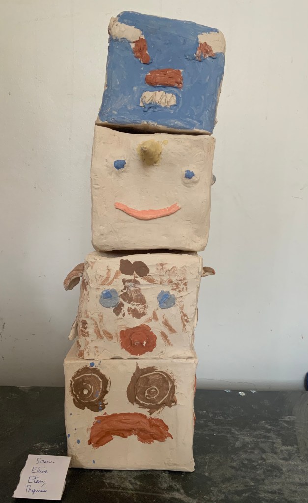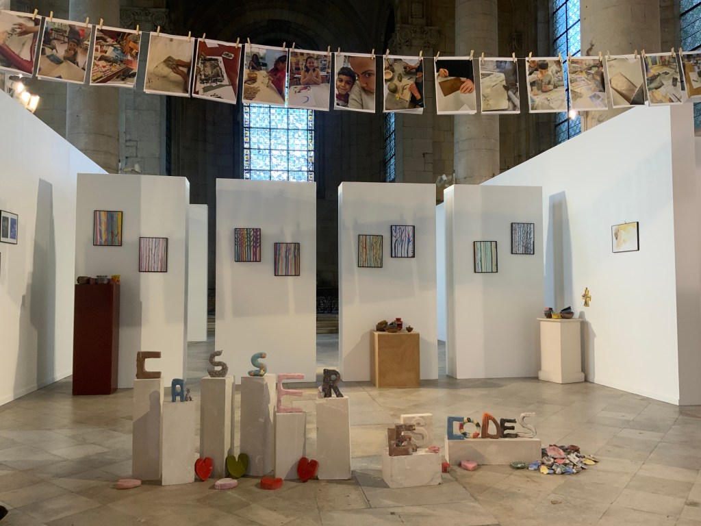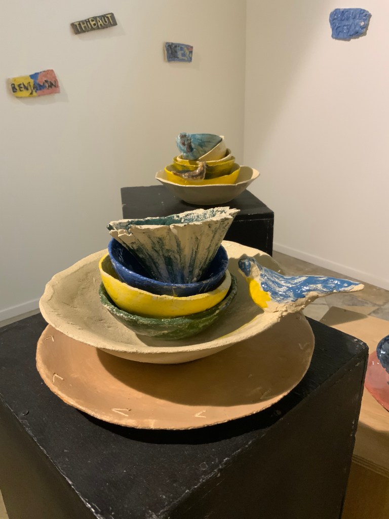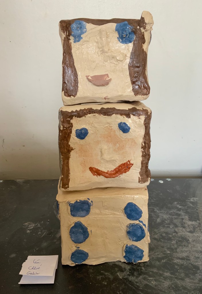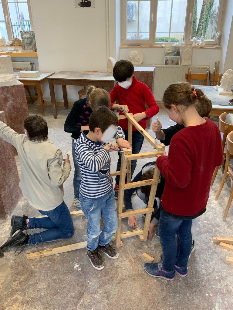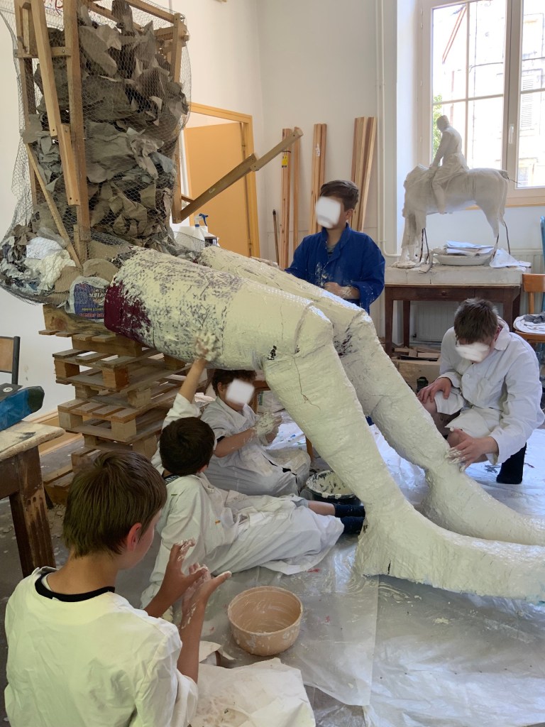 Oeuvre collective avec les élèves de l’atelier d’art( petits et grands) pour le conservatoire.