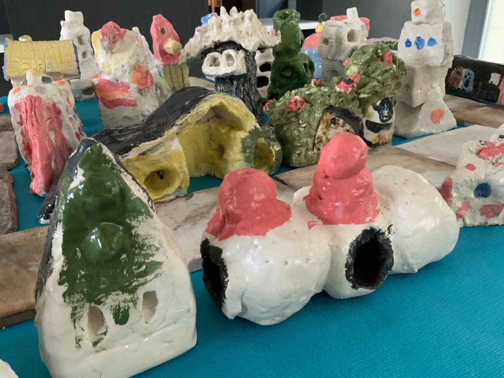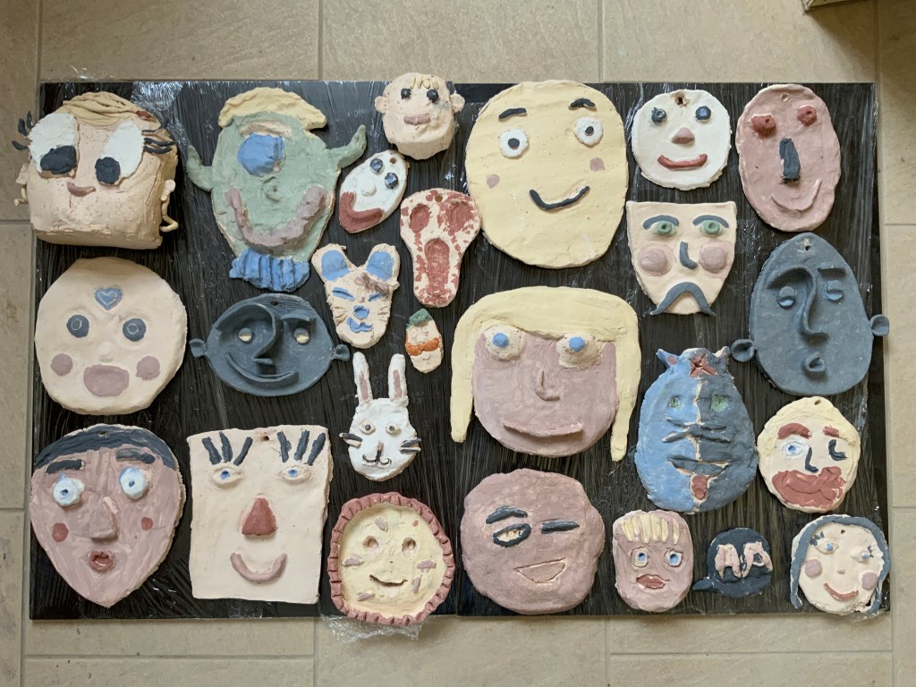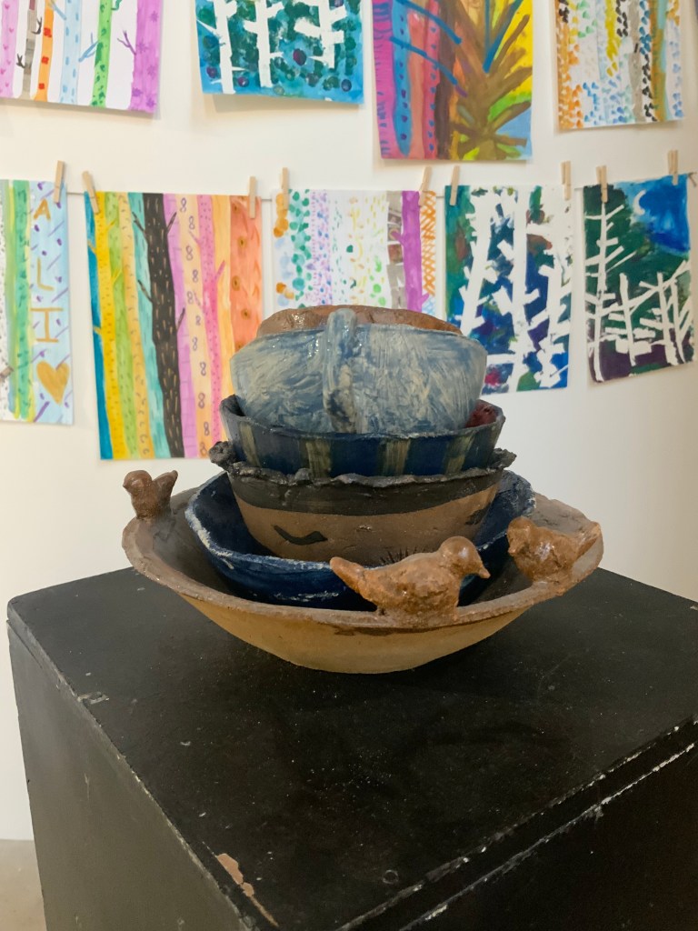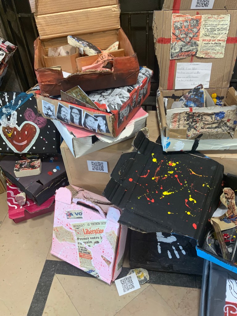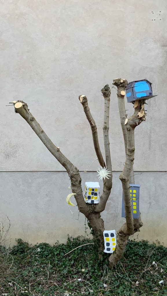 Oeuvre collective avec les élèves de l’atelier d’art( petits et grands) pour le conservatoire.