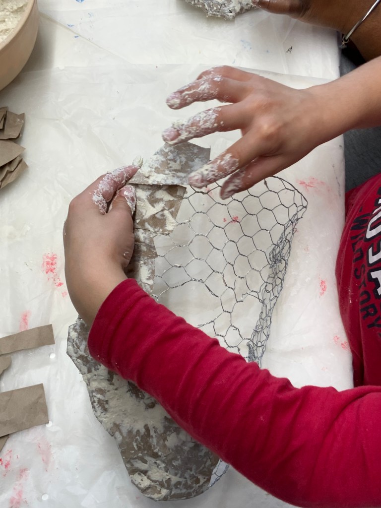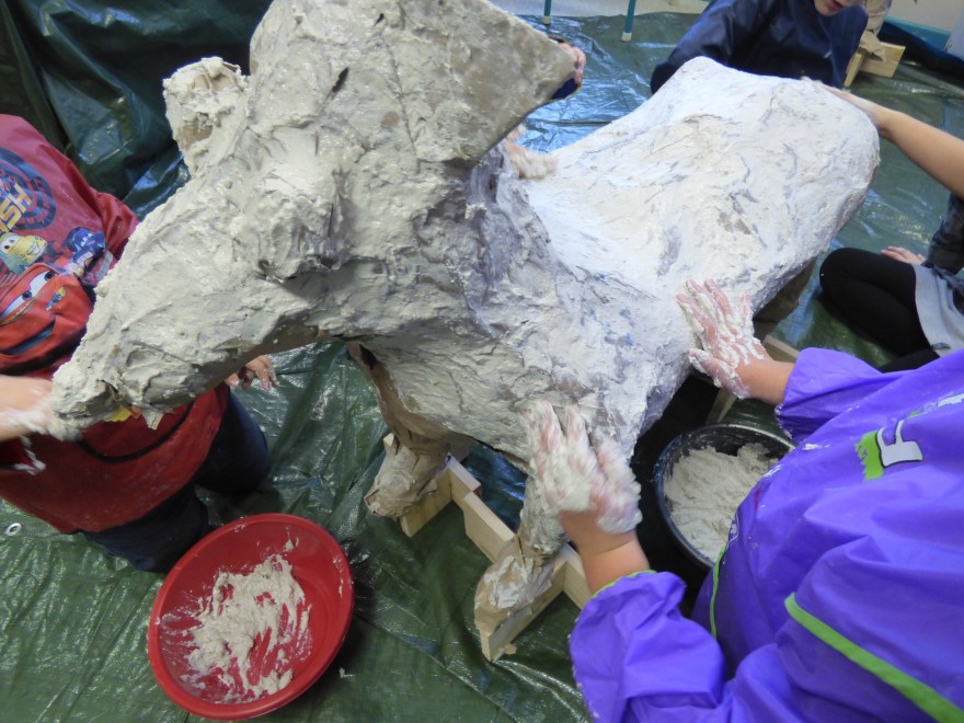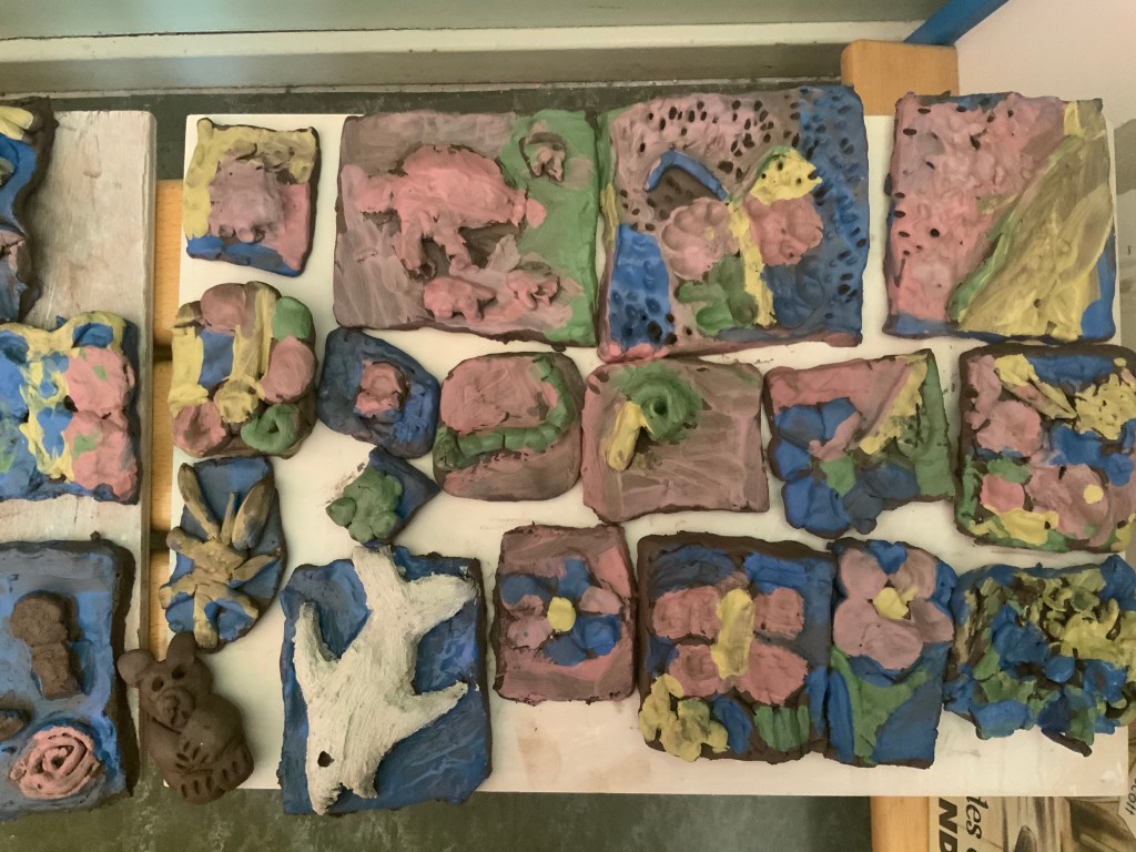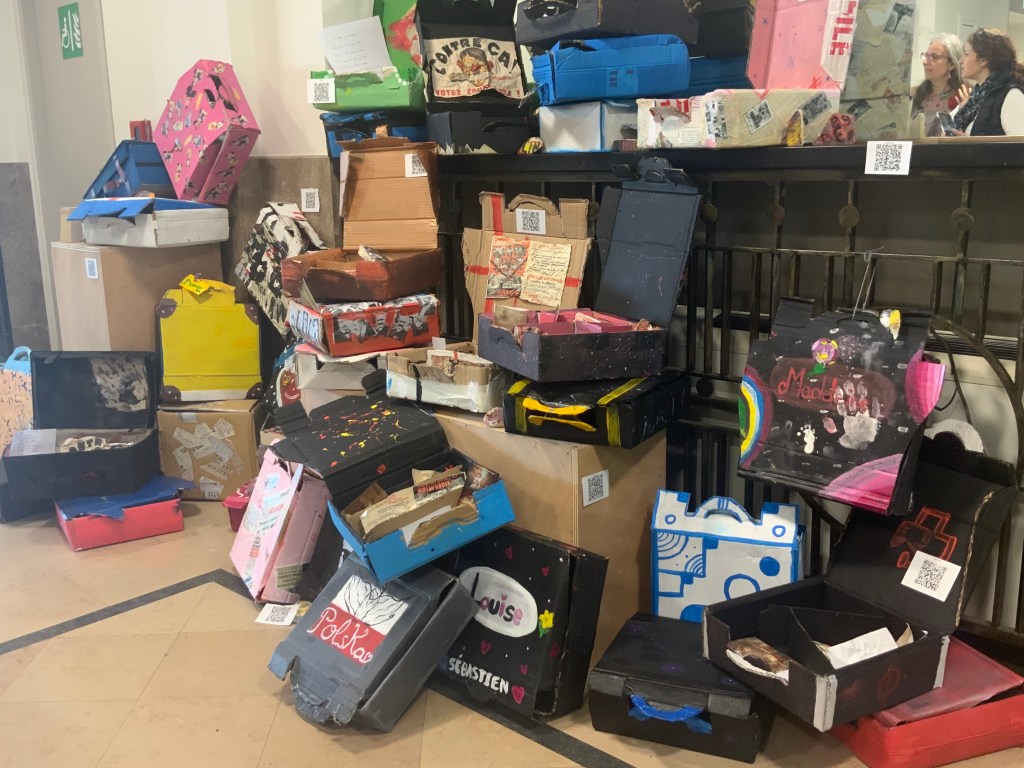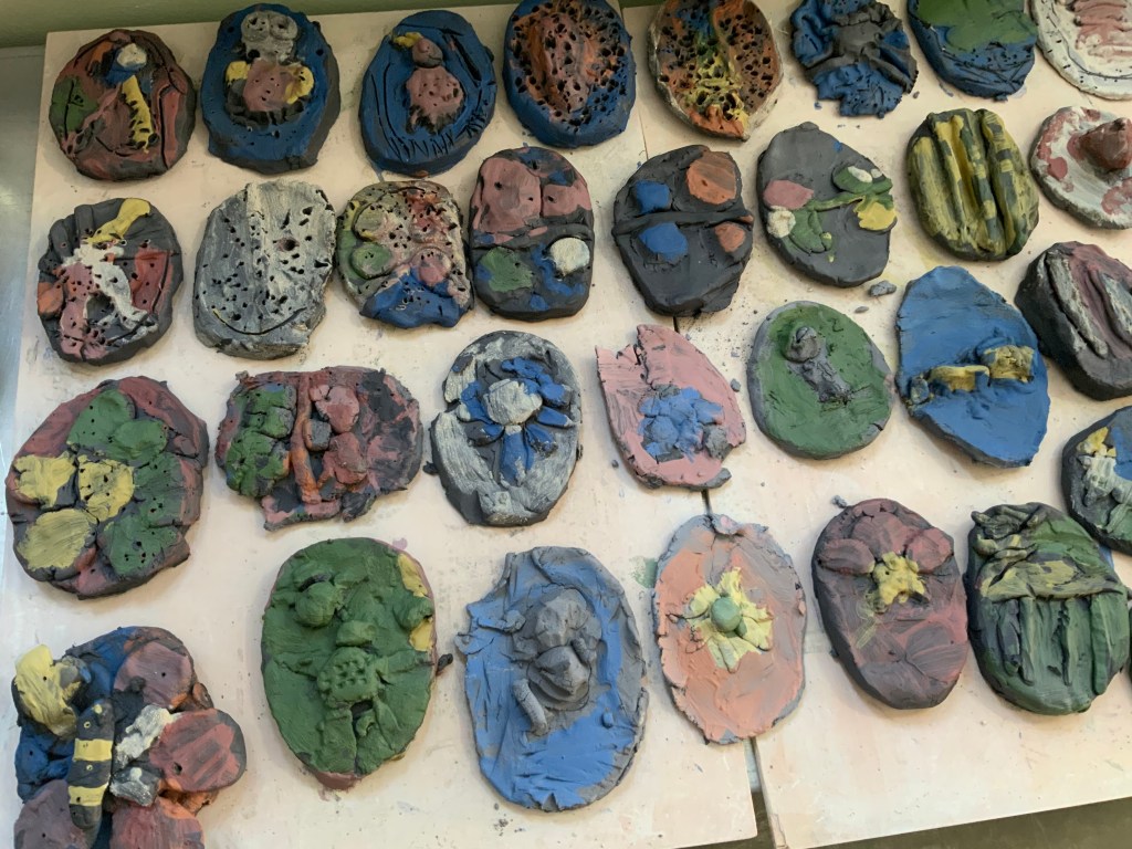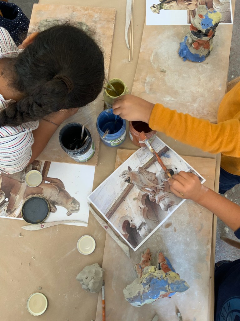 Oeuvre collective avec les élèves de l’atelier d’art( petits et grands) pour le conservatoire.